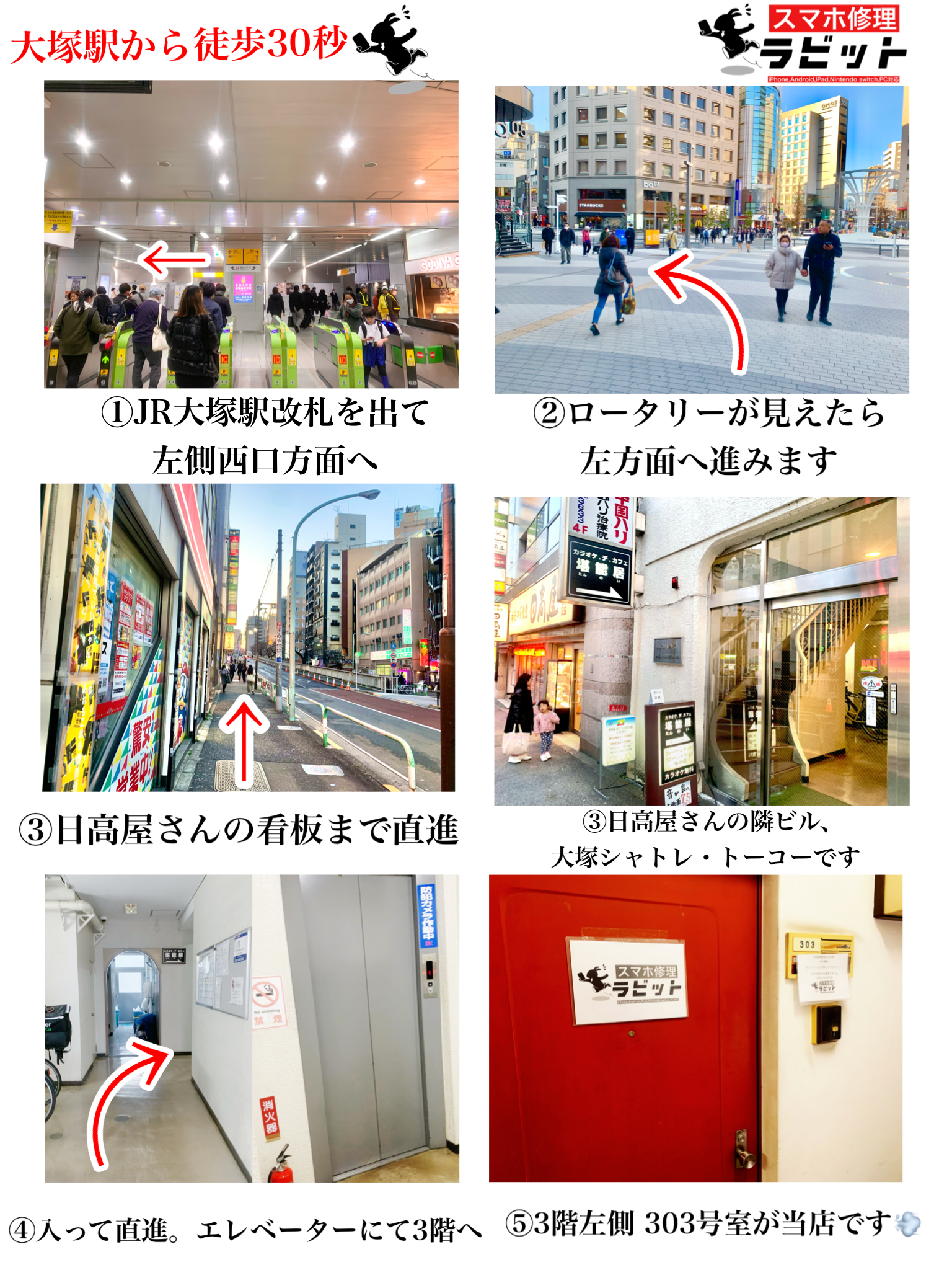 大塚店舗情報 2024.07.27 2021.11.03 JR山手線大塚駅北口から徒歩30秒!!日高屋さんのお隣のビル、シャトレトーコーの3Fです。わからない場合はお気軽にお電話にてご連絡ください! 📞050-7114-37295:00~20:00 無料相談のお問合せはこちら